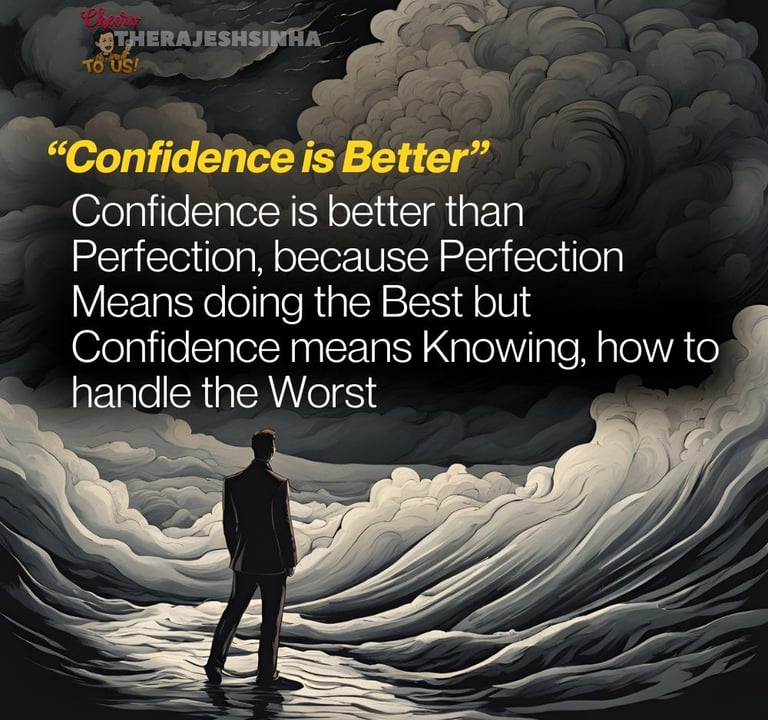 Confidence is like having a trusty umbrella in a storm—perfection might be the sunniest day, but when the clouds roll in, it's knowing how to dance in the rain that truly counts!